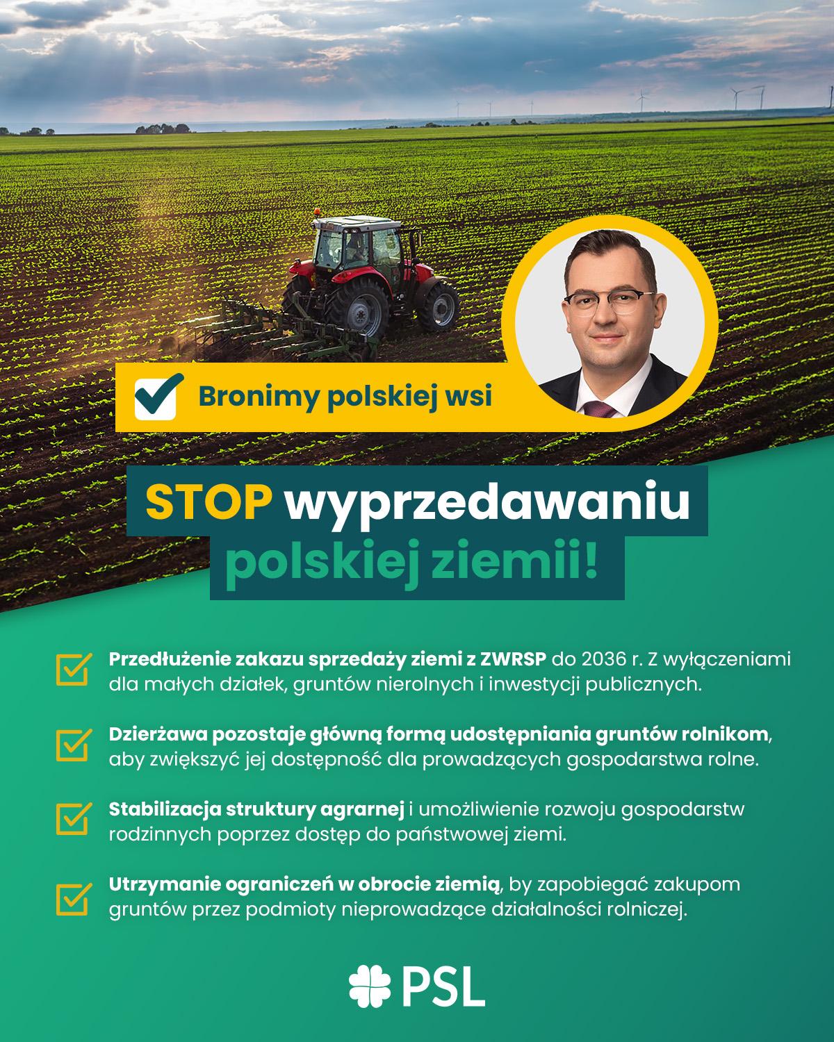 Minister rolnictwa i rozwoju wsi Stefan Krajewski przygotował projekt ustawy wydłużającej zakaz sprzedaży ziemi z Zasobu Własności Rolnej Skarbu Państwa o dodatkowe 10 lat i kładącej większy nacisk na dzierżawę terenów rolnych dla polskich rolników!
